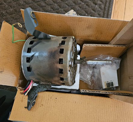 Photo: The old, broken blower motor from our furnace. It could have started a fire.